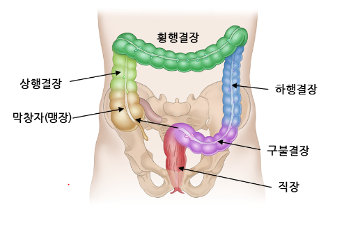 맹장은 대장의 첫 부분으로써 길이는 5~6cm 정도이며 복막에 쌓여 있습니다.
